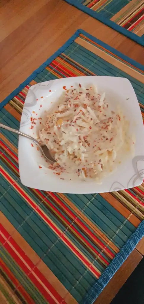 Saat: 15:00 1 bardak kefirin içine yarım enginar rendeledim. Içine 2 ceviz attım.