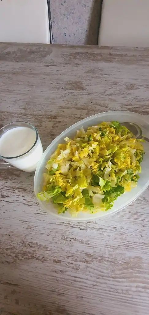 Akşam: Bol limonlu yeşil salata ( Içinde 1 kibrit kutusu yağsız köy peyniri ve tuzsuz zeytin var) yanında 2 adet haşlanmış yumurta