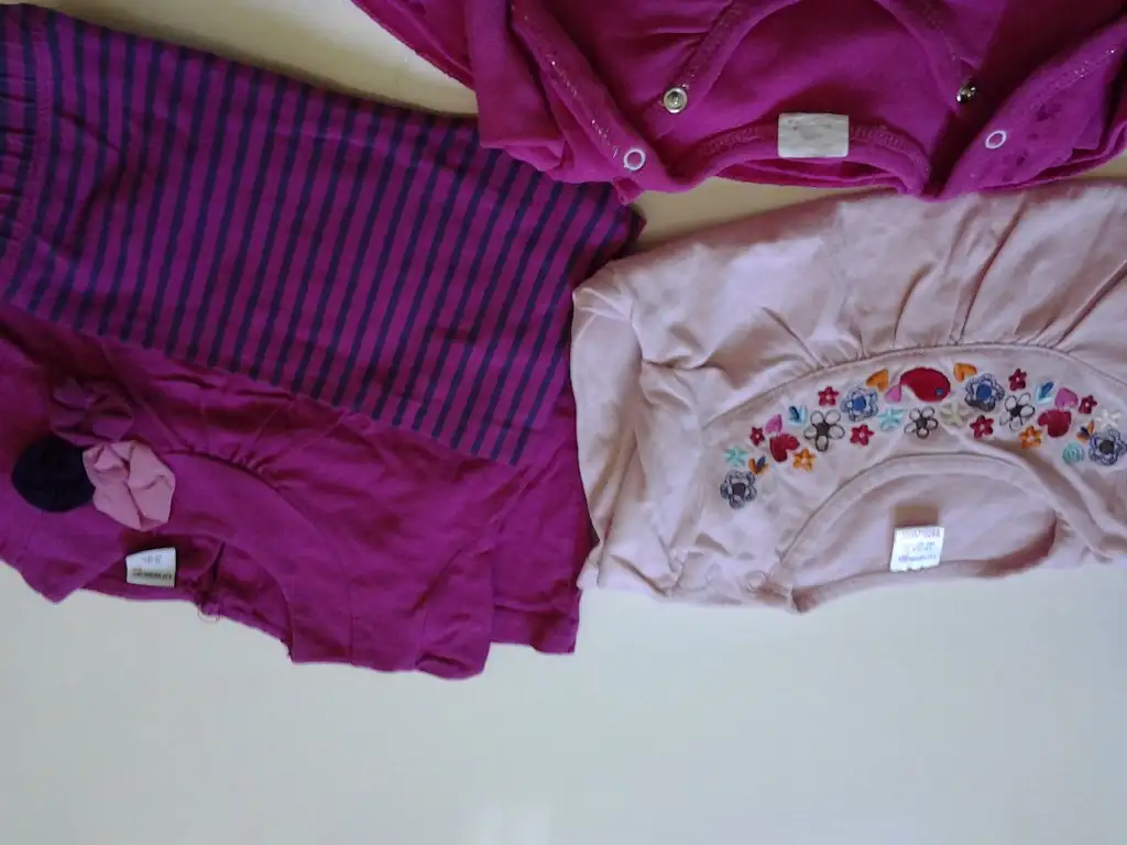 2 adet F&F marka çıtçıtlı body- 18-24 ay ( 1 yaşından sonra giyilebilinir), alttaki kalpli pembe body gap marka 2 yaş ( kalıp dar 1-2 yaş içn daha uygun) pembe pijama takımı 2 yaş ( 1-2 yaş için uygun) ,kapşonlu beyaz cichlid marka 2 yaş ( 1-2 yaş için uygun), ve lcw 12-18 ay taytlı takım. 2,5 yaşa kadar giyilir. hepsi ücretsiz, renk solması , ya da ufak lekeler var. yırtık delik sökük yok kesinlikle.