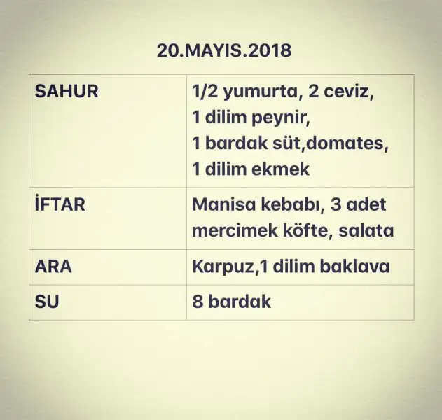 Menü güzel artık spor da başlamış devamı da gelsin20.05.2018 menum
