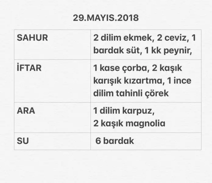 İki gün kaldı hatta oruç tutanlar için bu gün var sadece akşamı hafif tutalım sahura da dikkat edelimGünaydın kızlar nasılsınız dünkü menümü çok beğenmedim bugün daha güzel olacak inşallah :)