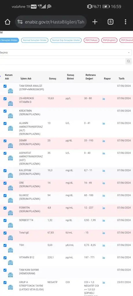 Arkadaşlar demir damlasını ve d vitaminini vermeyi sürekli unutuyordum ama şimdiye kadar doktorlar hiç değerleri düşük dememişti. 1 yaş kontrolü için çok fazla test yaptılar test sonuçları gördüğünüz gibi. Doktorumuz değerlerin çok ama çok düşük olduğunu, hematolojiye gitmemiz gerektiğini söyledi. Biraz araştırdım karşıma çok kötü şeyler çıktı daha önce başına gelen var mı gerçekten çok korkuyorum