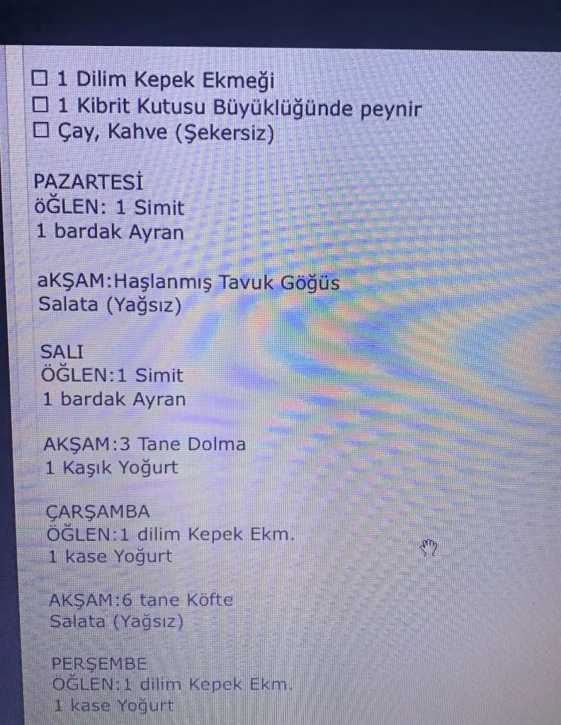 Ben diyette 1 simit asla yememLaptopu kurcalarken fi tarihinde kaydettiğim şöyle bir diyet buldum