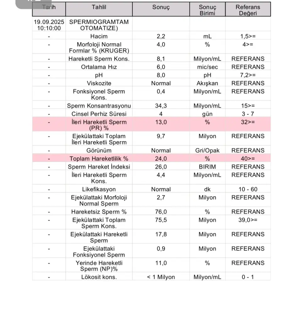 1 yıldır deniyoruz ben tahlillerimi yaptırdım sadece rahim filmi çekilecek doktor eşime bir hap verdi satın aldık onu sperm sayın yüksek haraketlilik düzelir demiş sizce?
