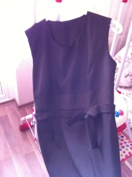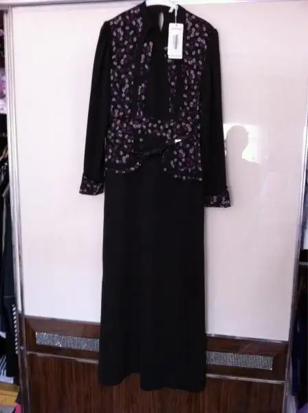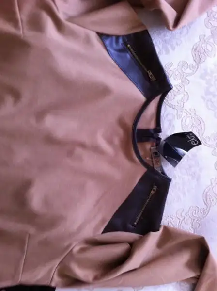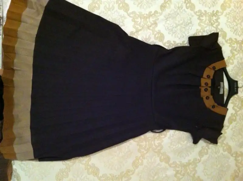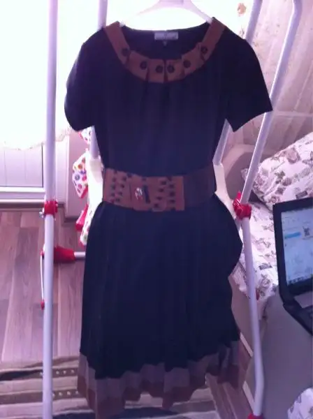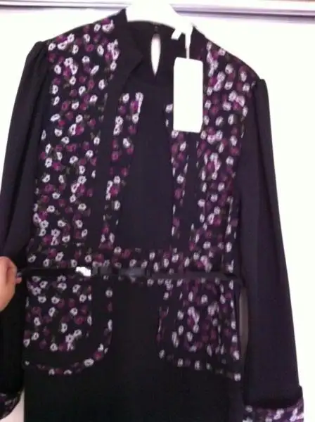 Kisa kollu siyah yakasinda ve etek ucunda kahverengi krem rengi var firfirli sanirim