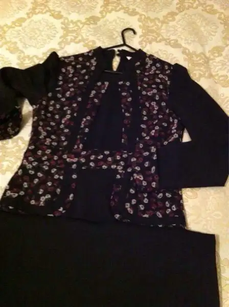 Pantolon eteğin rengi lacivert diğer pantolon siyah ayrıca kahverengi elbiseyi nazlınahar arkadaşıma satmıştım fakat ona büyük olmuş geri yollayacak düşünürseniz verebilirim 42 beden fiyat 15 tl