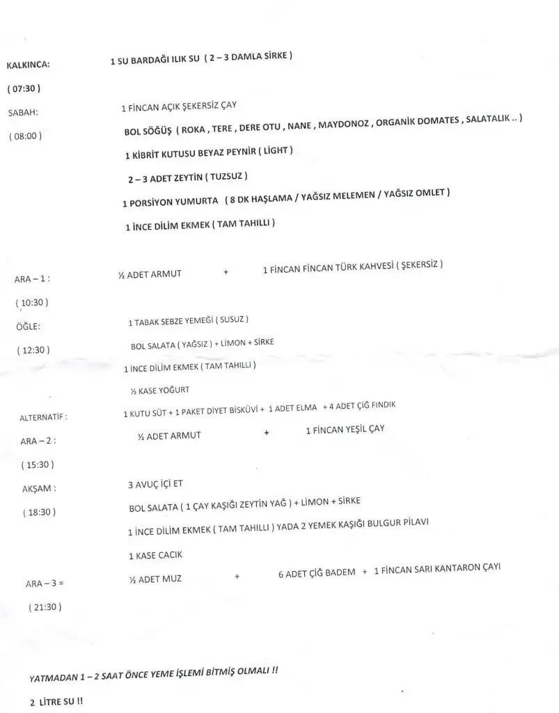 Sabah: 1dlm tambugday ekmeği,4 zeytin,domates,salatalık,1 katı yumurta,1 dilim light peynir