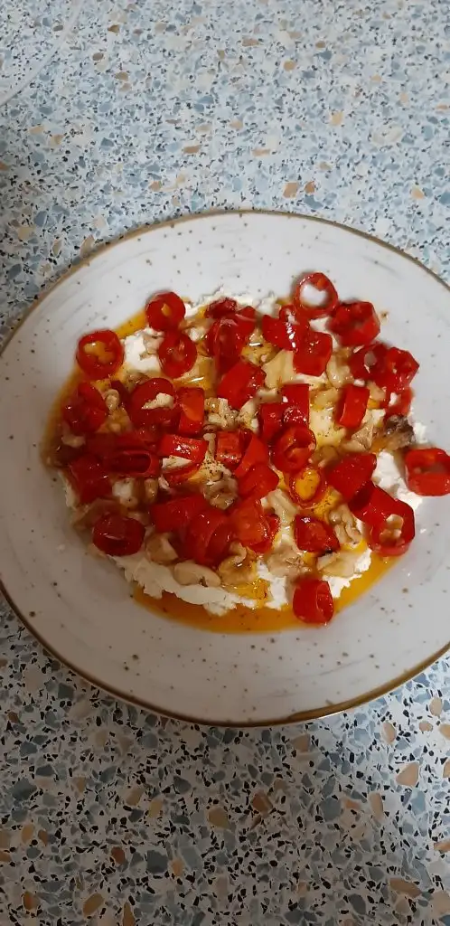 Üstüne biraz ceviz parçaları seriyorum.