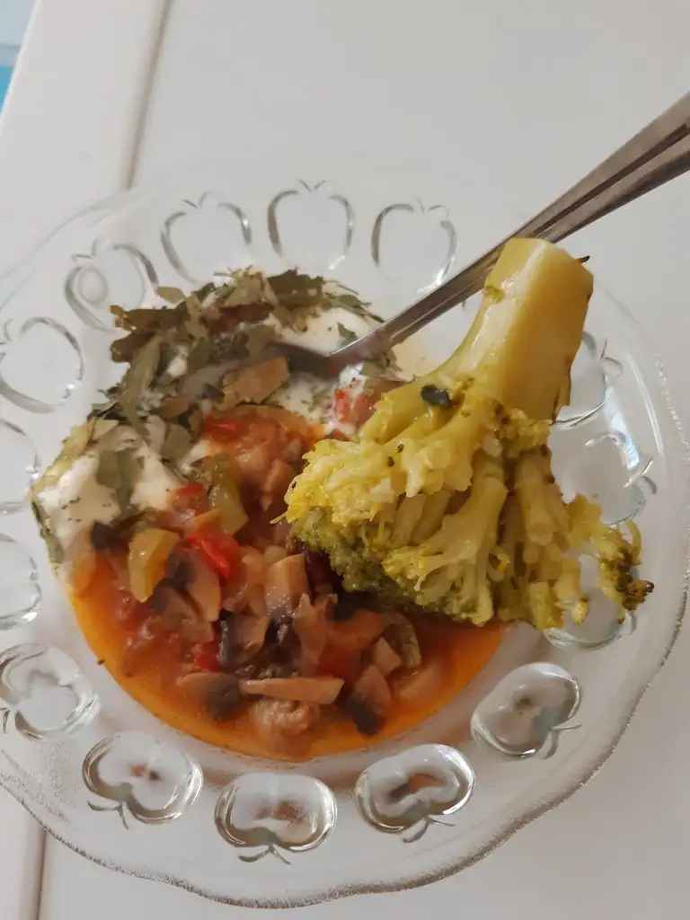 Marul,domates,birkaç kaşık mantar , peynir,1 çatal patates kızartması