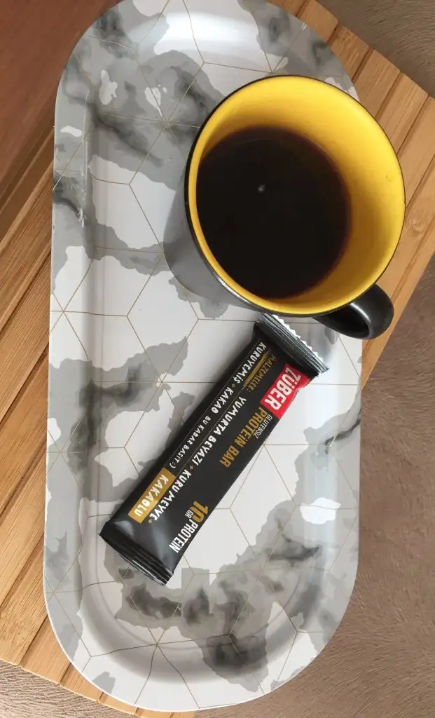 Yeni listemde ki kahvaltım, kahve ve protein bar