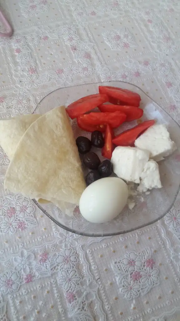 bugunku menum sabah 2 dilim tuzsuz ekmek 1 yumurta adacayi zeytin