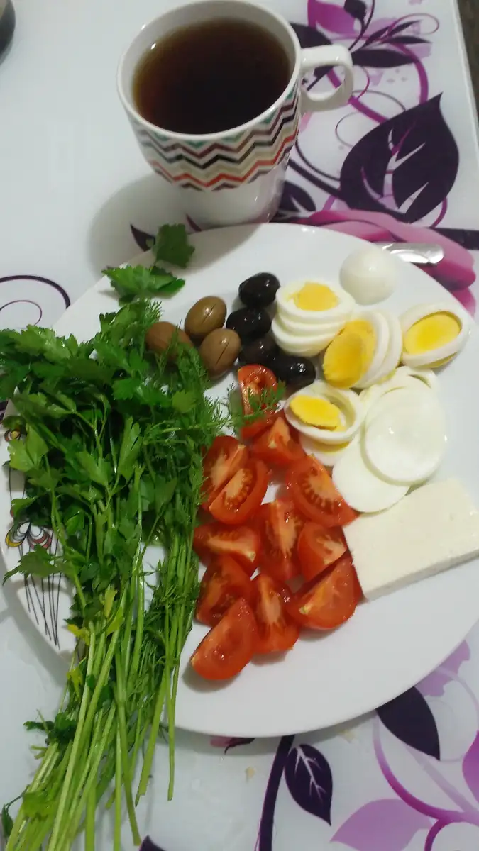 Üç zeytin iki lokma kadar peynir ve bir bardak çay içtim