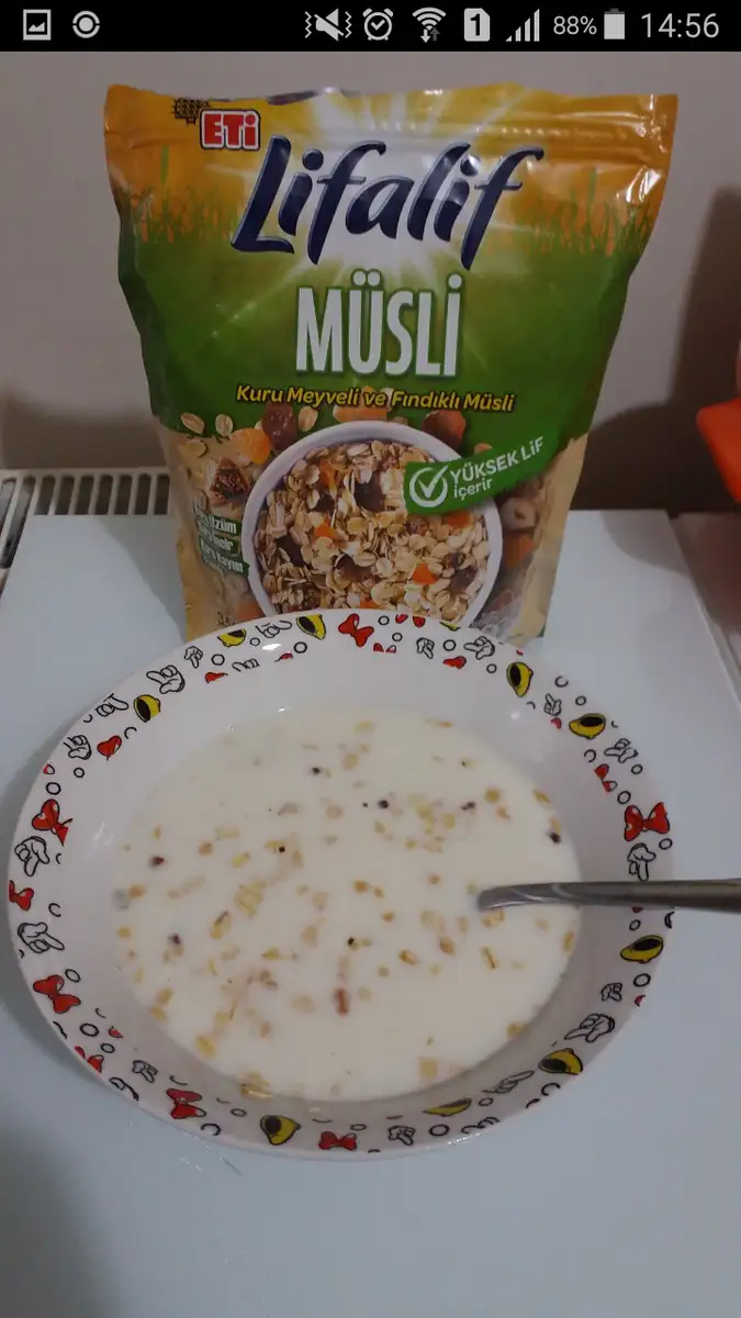 Sahur: yulaf lapasi ( 5 yk yulaf, 1 sb sut, 4 gun kurusu kayisi, 10 cig badem, 1 tk chia, 1 muz, tarcin)