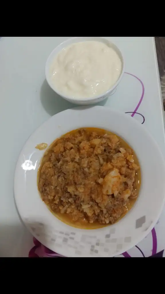 Afiyet olsun canımOgle yemegi kiymali karnibahar ve yogurt. Cok sukur bitti sonunda yemekemine kahvaltida 3 cerry domatesini yememis bir de onlari yedim.