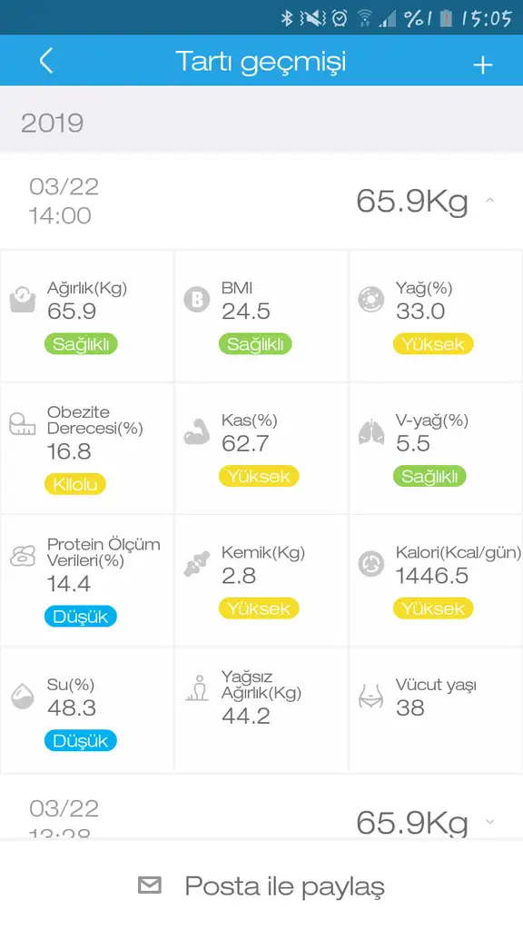 Aldım canım benim beden yaşım da 70 çıktı ben şok. Benim gittiğim binde 15 tane filan vardıPlaystoreden uygulama indirip bluetoothla tartiya baglaniyorsun cnm veriler telefonuna geliyor