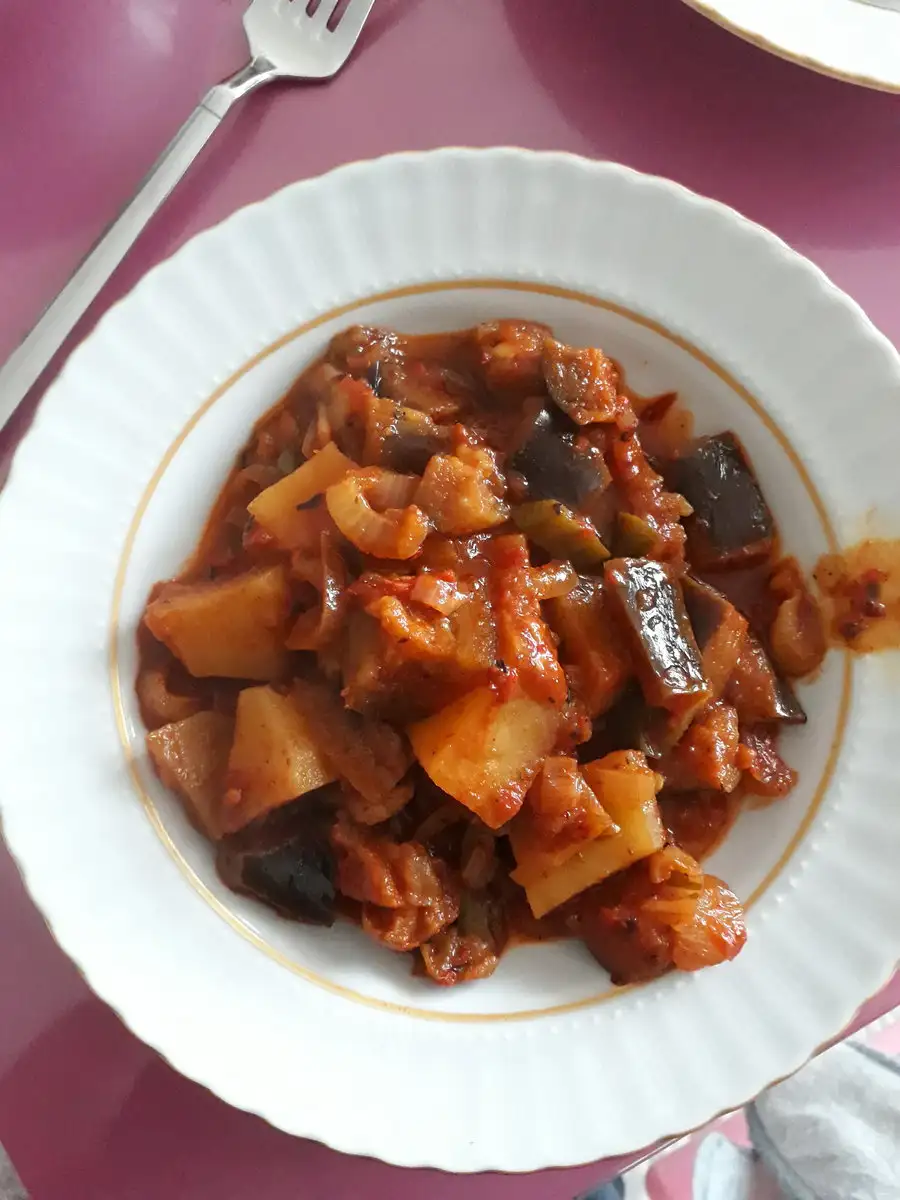 Ben sarımsak koydum kavururken ve daha sonra nar ekşisi, yesillikleri soguyunca ekledim