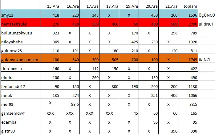 sizleri de tebrik ediyorum kızlar... puanlarınız harika