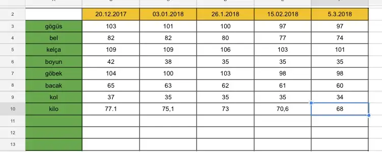 Aralıktan önce ölçü almayı unuttum. Sonrasıda böylesizde ölçün insan çok motive oluyor.