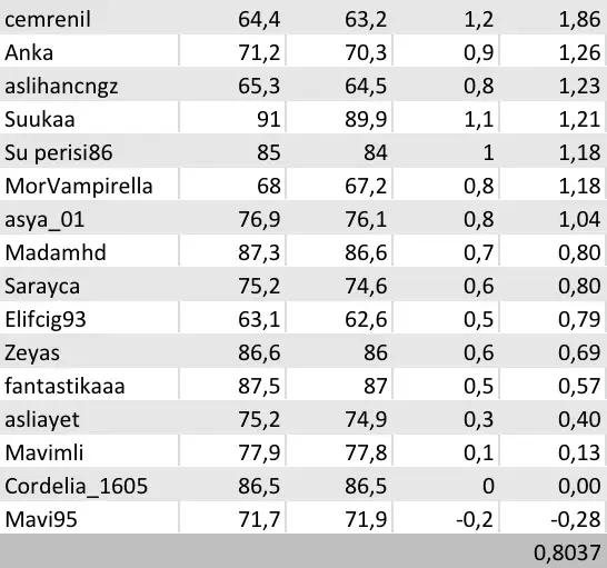 Bu da takım içi sonuçlarımız arkadaşlar.