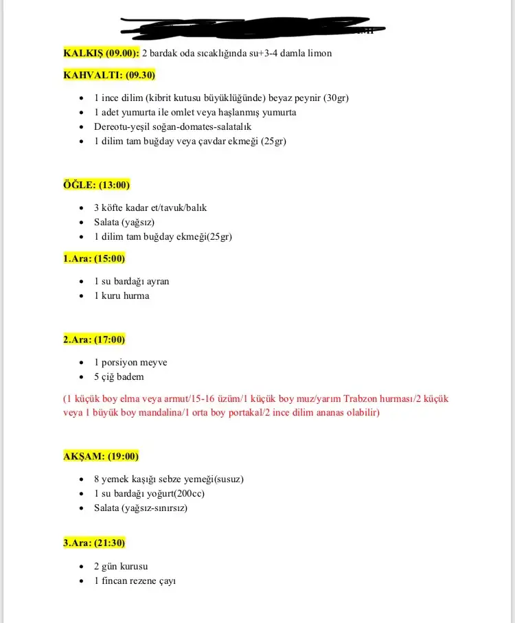 1 hafta canım. Sonra değişecek listeBunu ne kadar zaman uygulicani söyledi diyetisyen sana anka