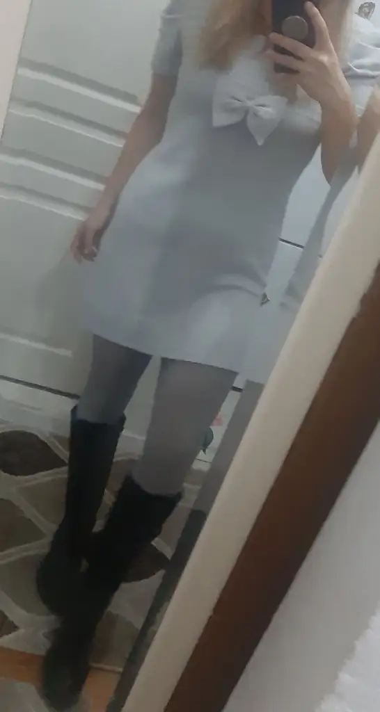 Kızlar ya evlilik yıldönümünde böyle giyineyim dedim sırf cıbıl bacak olmasın diye kilotlucorap aldim eşim olmaz diyo ciddi normalde bu elbise ama bana çok kısa oldu 😪ne giysem ki ya bunu çok begenmistim 20191108_202320.webp