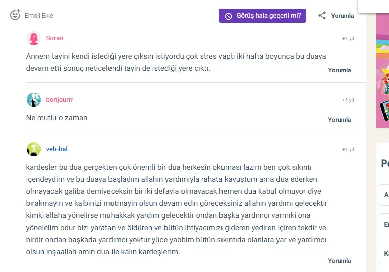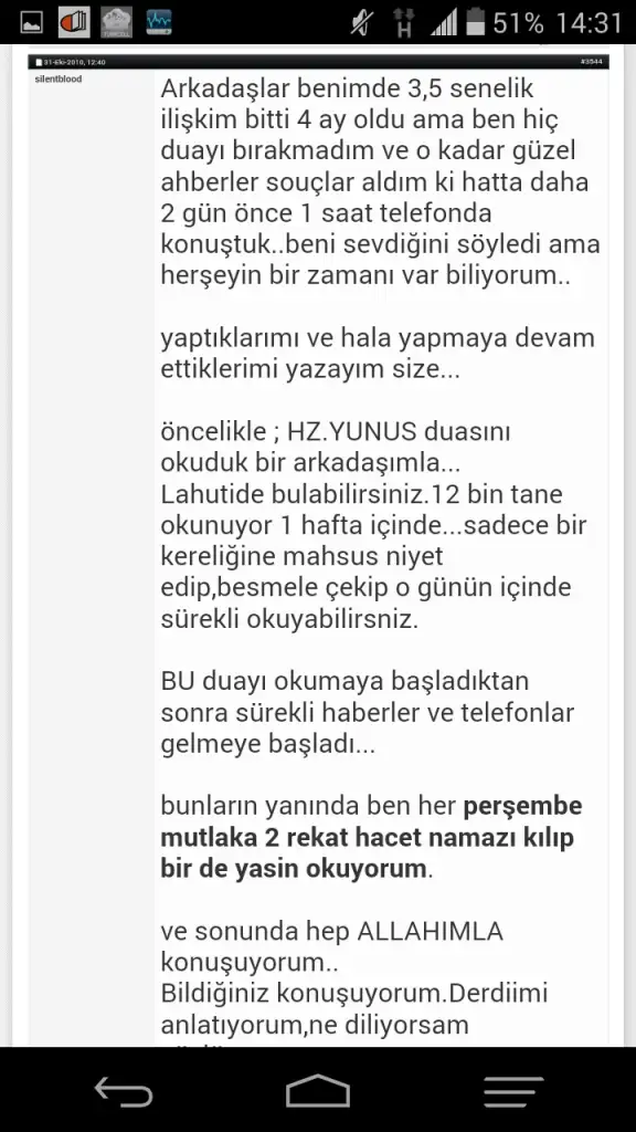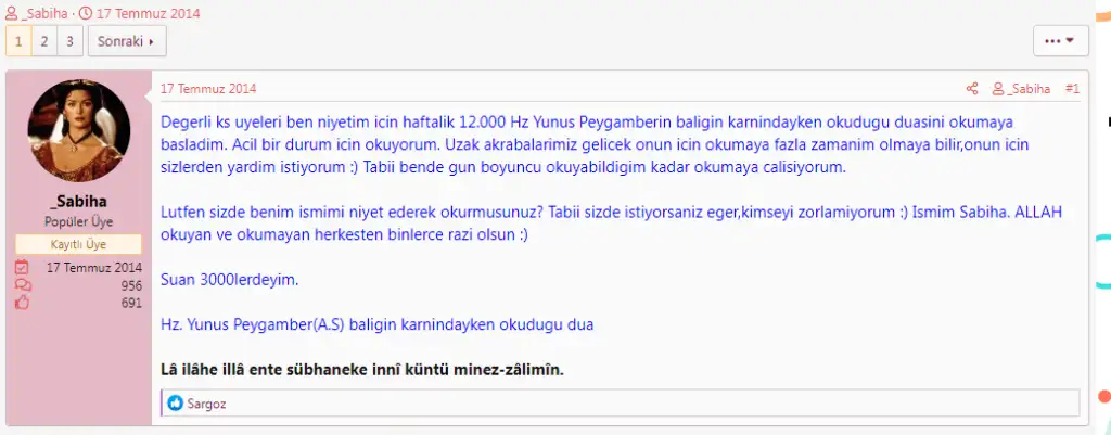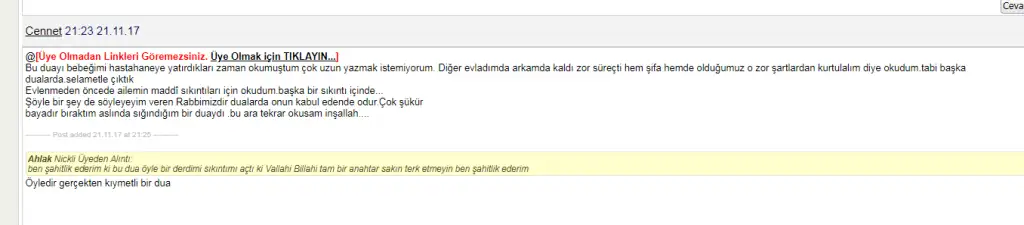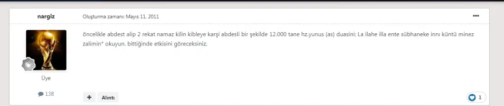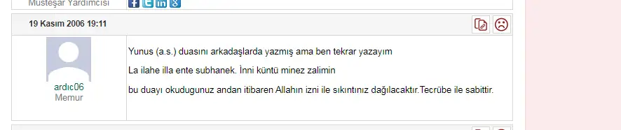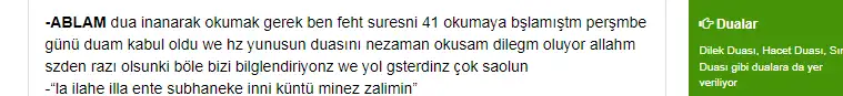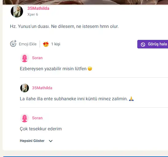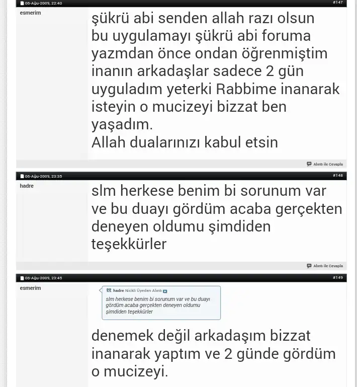 bu aralar başka okumalarım var diğer okumaları bitiremem diye dua gruplarına katılamıyorum .Yunus duasını çokça okuyun bir de Ya fettah esmasını okuyun