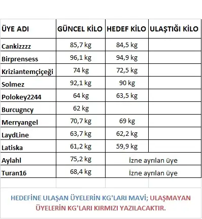 B burcugncy canım hedef kilo bildirimi yaptın mı bütün sayfaları gezdim göremedim de?