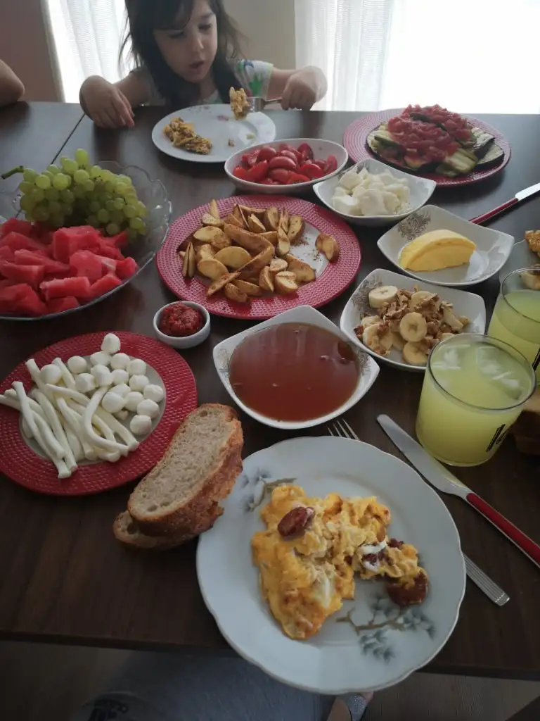 Sofradaki herşey yağsız pisirildi limonata da şekersiz sağlıklı zengin bir pazar kahvaltısı:KK36: