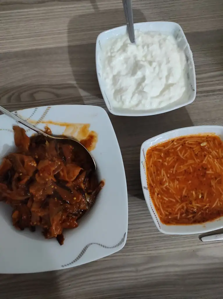 Patlıcan kurusu canımMenün çok güzel afiyet olsun kuzum. Anayemeği anlayamadım ama gayet ölçülü olmuş hepsi. İf mi yapıyordun.
