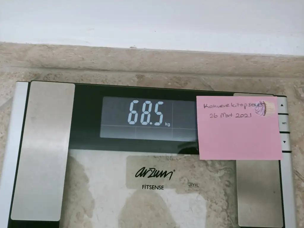Fotoyu eklemeyi unutmuşumSelam kızlar. Geçen hafta 85.3'tüm. Bugün reglim ve aç karna unuttum, kahvaltıdan sonra tartındım.