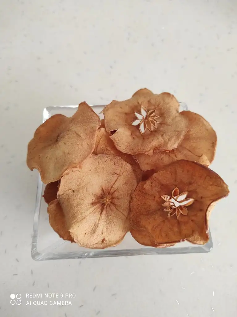Gayet sağlıklı atıştırmalık olmuş.. Deneyeyim ben de.Evde vakti zamaninda aldığım nicer dicer vardı v şeklinde bıçağı olan parçayla incecik dilimleyip fırına attım 120 derece civarlarında yarım saat kadar pisirdikten sonra alt üst çevirdim bir saatin sonunda çıkardım. Çıkardığımda hafif yumuşaktı birkaç dk dışarıda durunca çıtır çıtır olmuş. Doğrayıcı yoksa incecik dilimlenebilir ya da bazı rendelerde salatalık falan doğramak için bölüm oluyor o da kullanılabilir. Üzerine tarçın eklemek istersen o da yakışıyor öyle de denedim ben