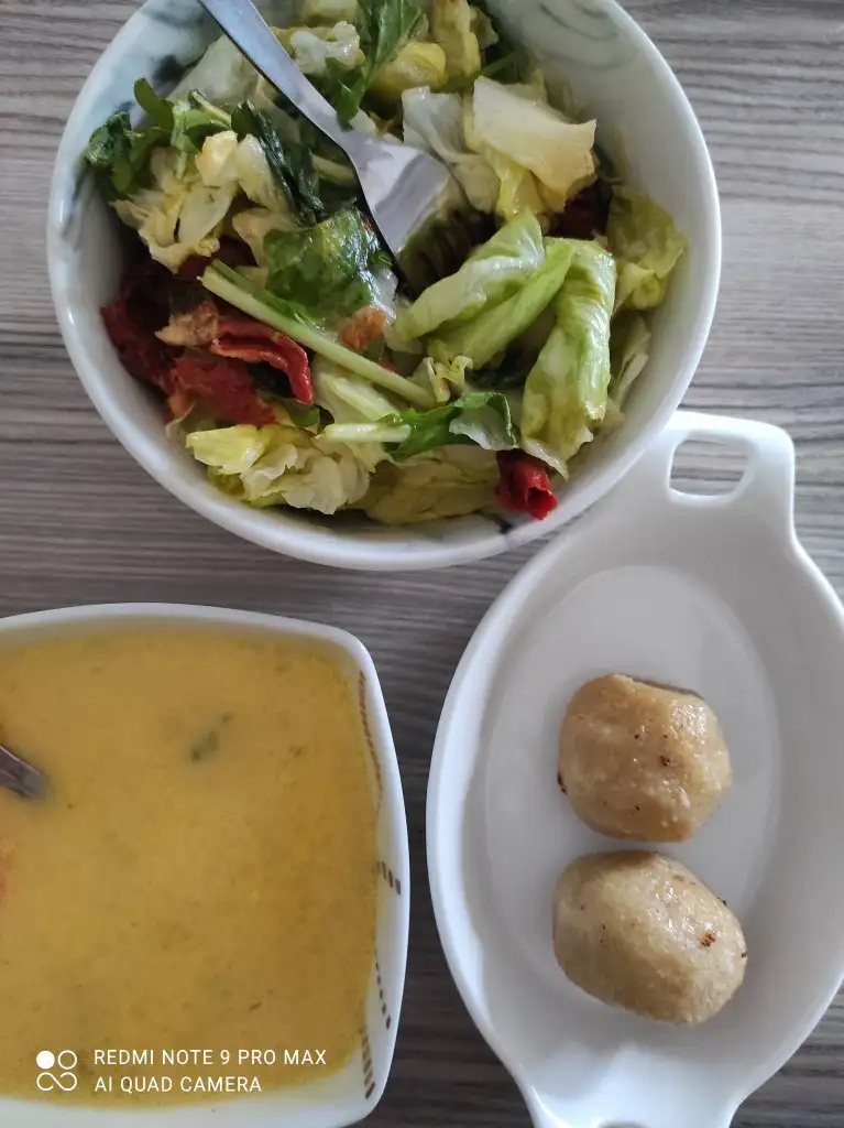 19.00 iki kasik bulgur, bir parca kirmizi et, salata