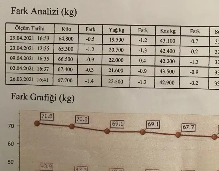 Etraf farketmeye başliyorsa işler yolunda gidiyordur. Keyfini çıkartBen buradaki tartıda biraz fazla çıkacağım ne yazık ki tartımı da getiremedim. Ama herkes uzaktan uzağa görenler de kilo vermişsin dedi, hoşuma gitti açıkçası, mutluyum :)