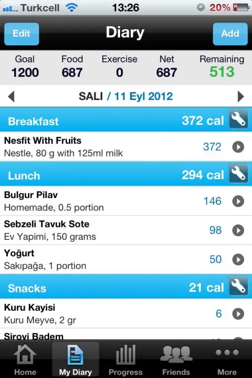 Kendi hesabından günlük ekleyip, aylık haftalık kilo değişiminide grafiksel görebilirsin. en güzel yanı, yemek arattığın zaman bizim türk yemekleri hep var. Bulamadığım olmadı bugün denemelerimde![]()