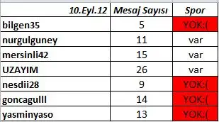 Mesaj Sayıları ve Spor(10 EYLÜL)