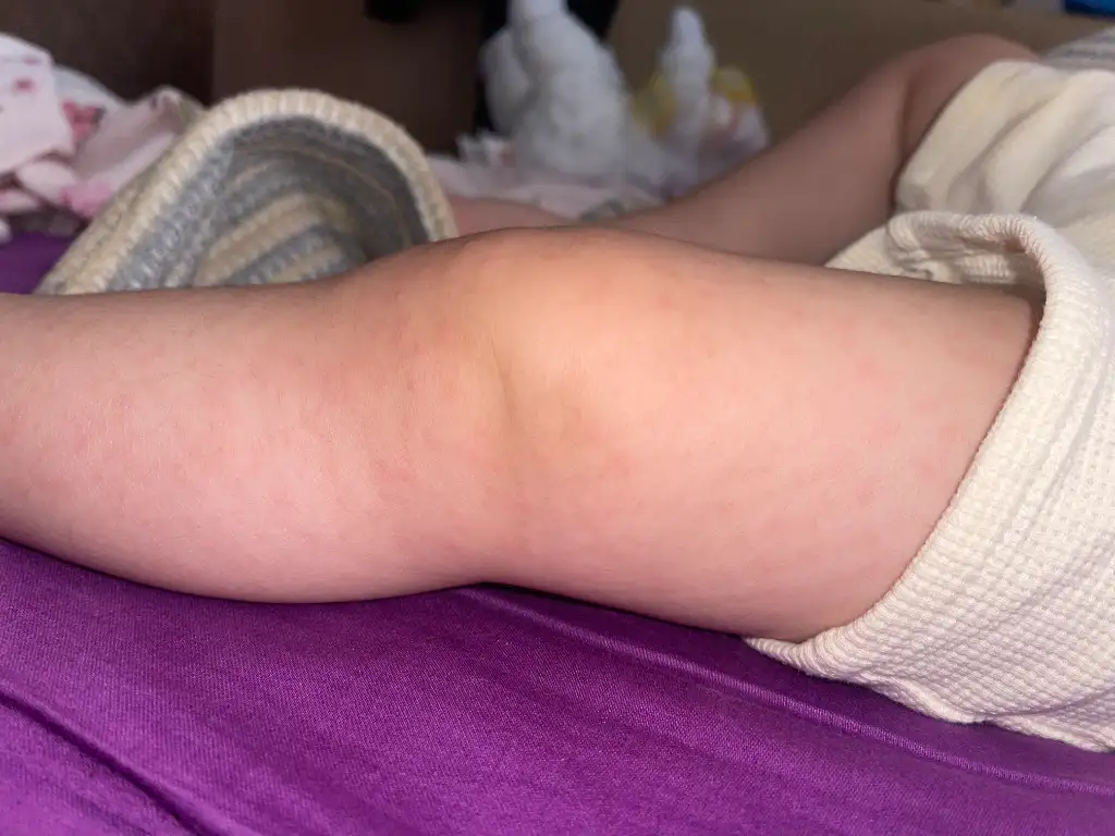 Merhaba arkadaşlar 14 aylık bebeğim var cuma gecesi ve cumartesi günü çok hafif ateş yaşadı 37-38 arası pazar günü hafif döküntüler başladı görselleri alta ekledim. kollarında ve bacaklarında çok yoğun fakat yüzünde ve boynunda aynı şekilde