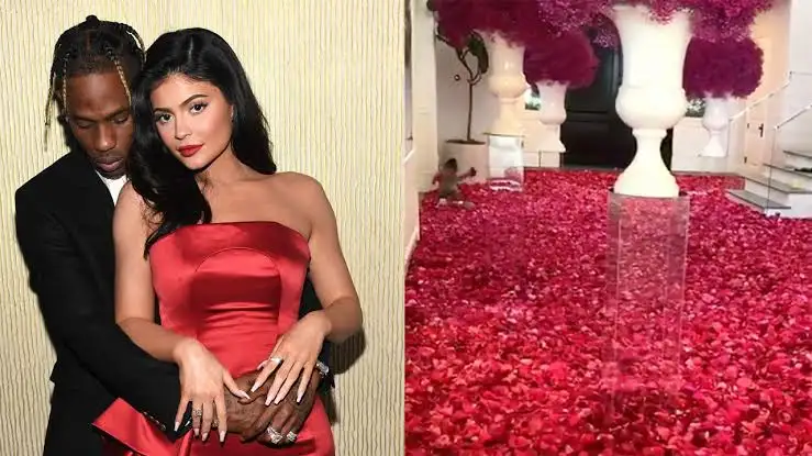 Kylıe jenner in sevgilisinin sürprizini gördüğünüz müo.m.g evin her tarafı full gül yapraklarından görünmüyor muhteşem di