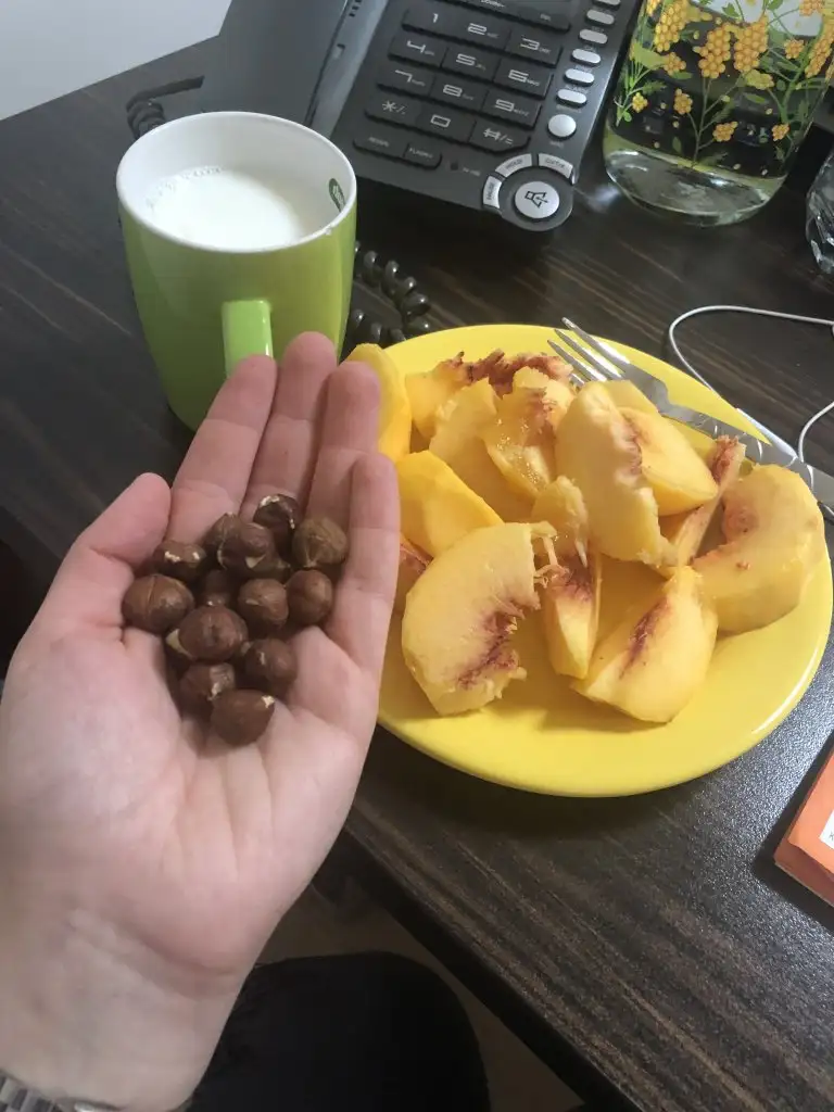 kuruyemişin fazla olmuş ya badem ya ceviz tüket. kuru kayısı kahvenin yanına güzzel gidiyor.