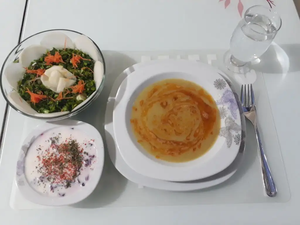 Akşam :etli nohut, üç tane mücver, iki kaşık yoğurt