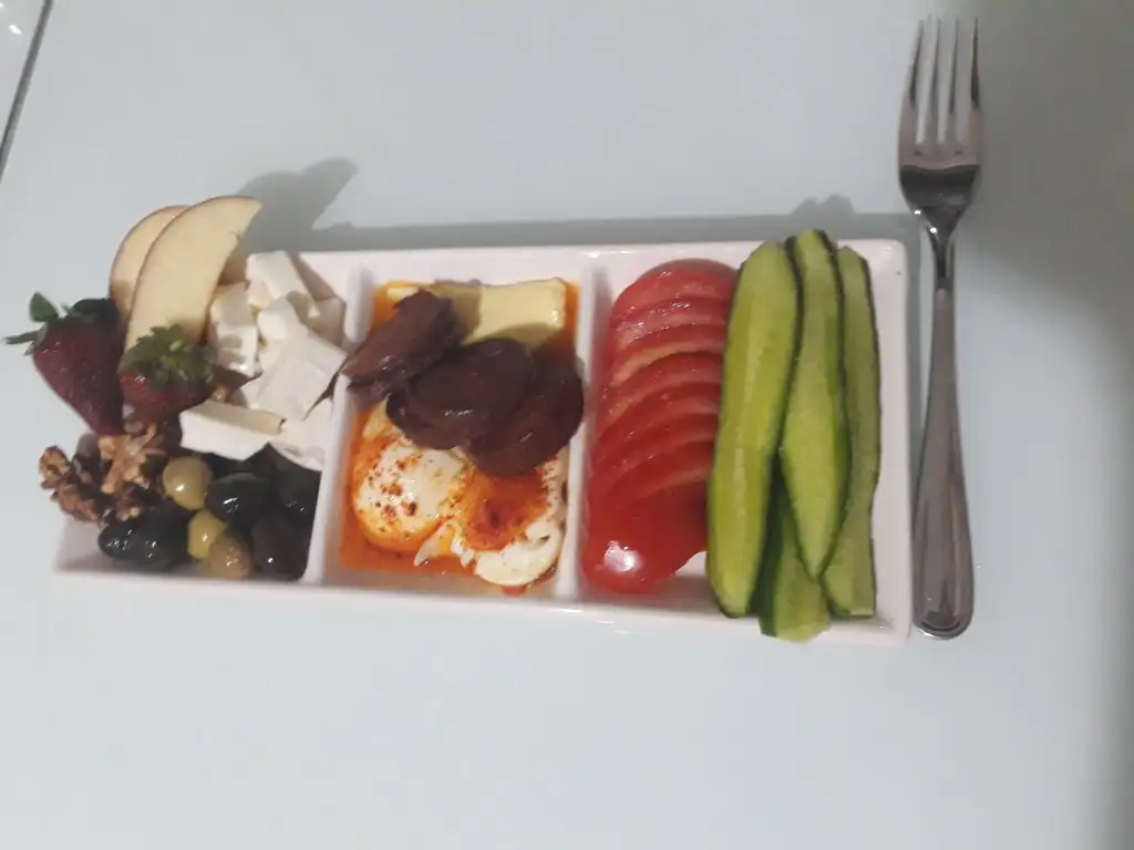 Tavada tereyağıyla haşlanmış yumurta biraz sucuk kızarttım