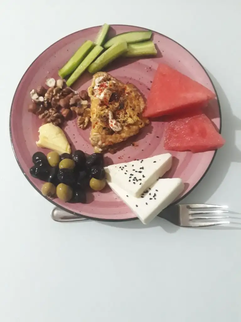 Sahur 5 zeytin 1 kk beyaz peynir domates salatalık tost çay