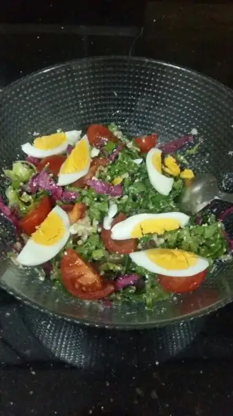 İçinde biraz lor peynir biraz ton balığı 1 yumurta ,marul,mor lahana var birkac damla zeytin yagı var