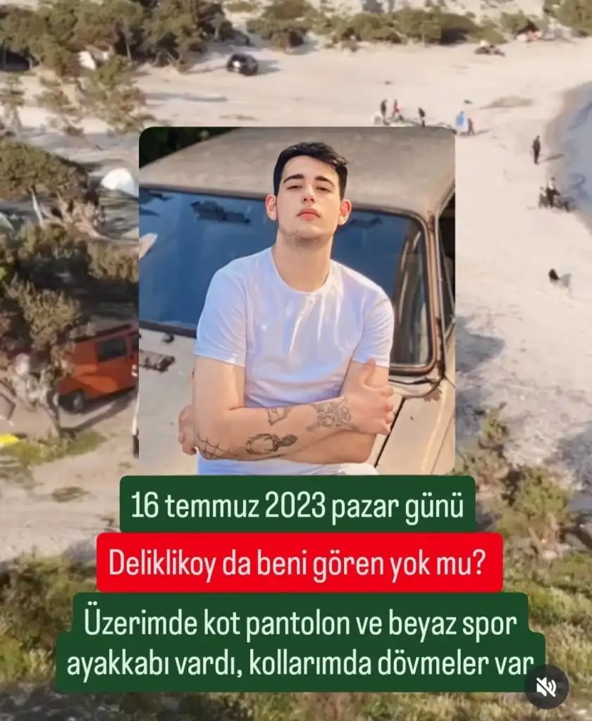 Eren 19 yaşında 15 temmuzda arkadaslariyla beraber alaçatıya gidiyor en son deliklikoyda gördüklerini söylüyorlar, ama o tarihten beri ne ölüsü ne dirisi yok çocuktan hiçbir iz yok ailesi perişan halde.