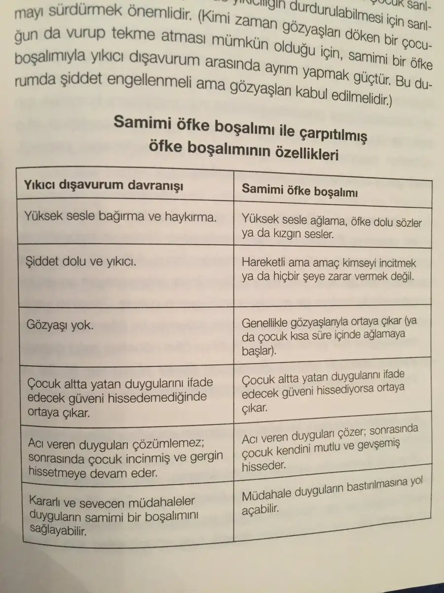 Herkese faydalı olması açısından çocuklarda samimi öfke boşalımı ile yıkıcı dışa vurum yani çarpıtılmış öfke boşalımını karşılaştıran bir tablo yüklüyorum.