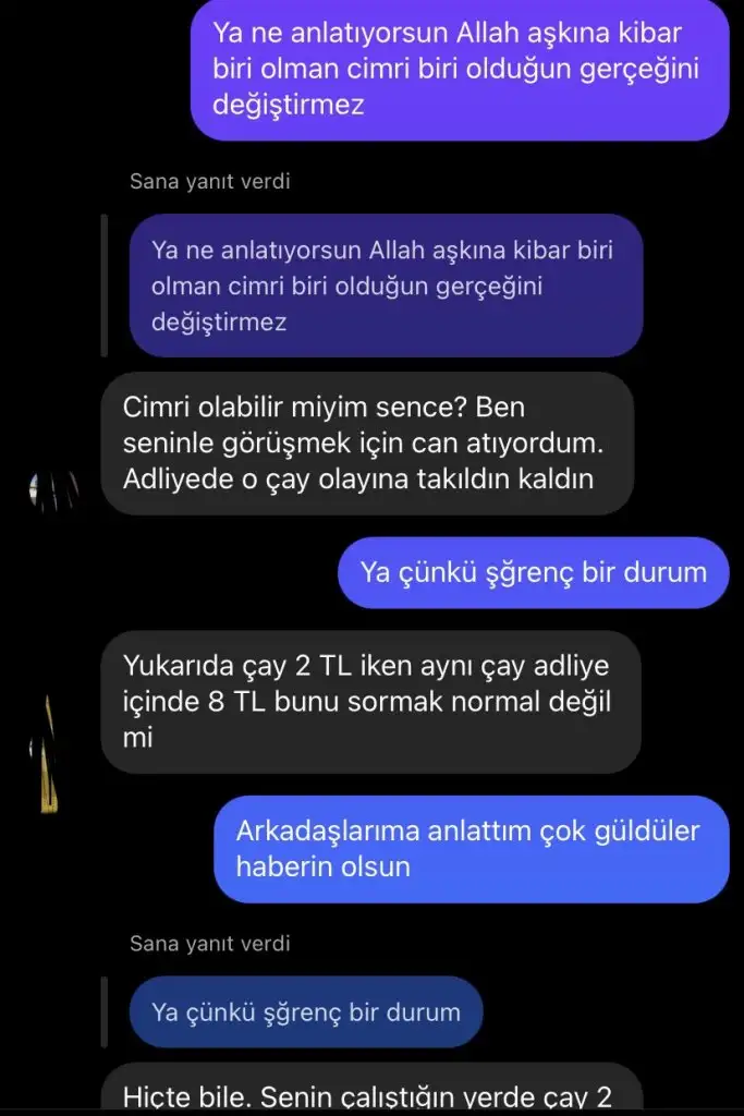Çok kırıcısınız.Bir kaç tane mesajımızın ekranını çektim. Belki biraz ağır konuştum ama hak ettiEki Görüntüle 3170647 Eki Görüntüle 3170660