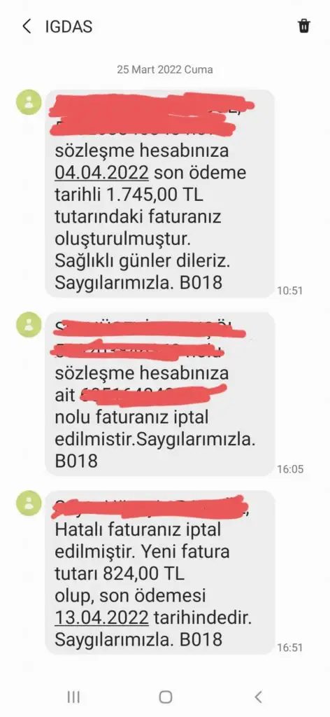 Geçen ay doğalgaz faturası 1745 TL gelmişti. Bu ayki kullanımımızda bir degişiklik olmadı yine aynıydı kombi sürekli açık ve aynı derecede. Faturaya zam gelse de %100den fazla bir zam gelmedi sonuçta. Biz de bir yanlışlık olabilecegini düşünüp İstanbul'daki gereken numarayı aradık bir yanlıslık mı oldu diye. Babamdan sayaç numarasını istediler ve sayaç numarasına sistemden baktıklarında evet yanlıslık olmuş demişler. Ve yarım saat sonra faturamız iptal edildi ve 1745 TL' den 824 TL'ye düştü mesajı paylaştım ekte. Biz neyseki farkettik ama kim bilir kaç kişi böyle hatalar sebebiyle farketmeden fazla fatura ödüyor. Eger faturanızda geçen aya göre çok fazla fark olursa siz de dikkat edin bu konuda