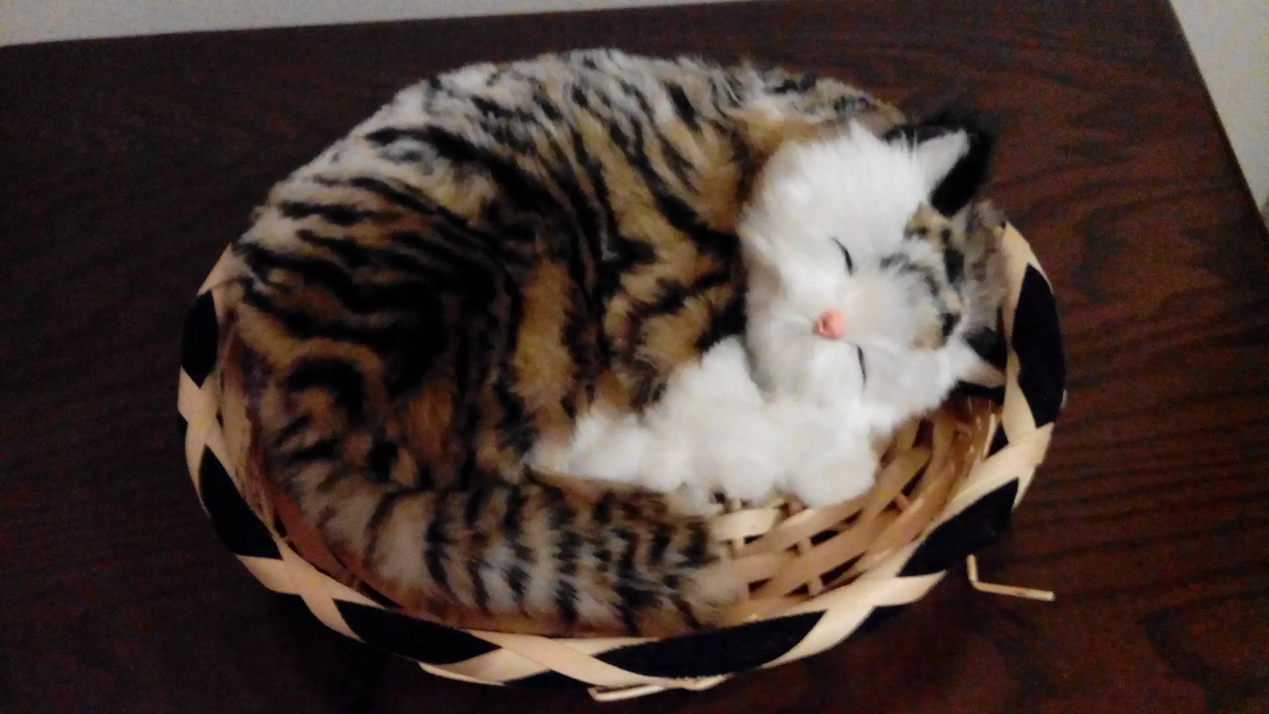 IMG_20141126_165324.webp sepette uyuyan oyuncak kedi sorunsuz bir özelliği yok gerçk kedi gibi görünüyor