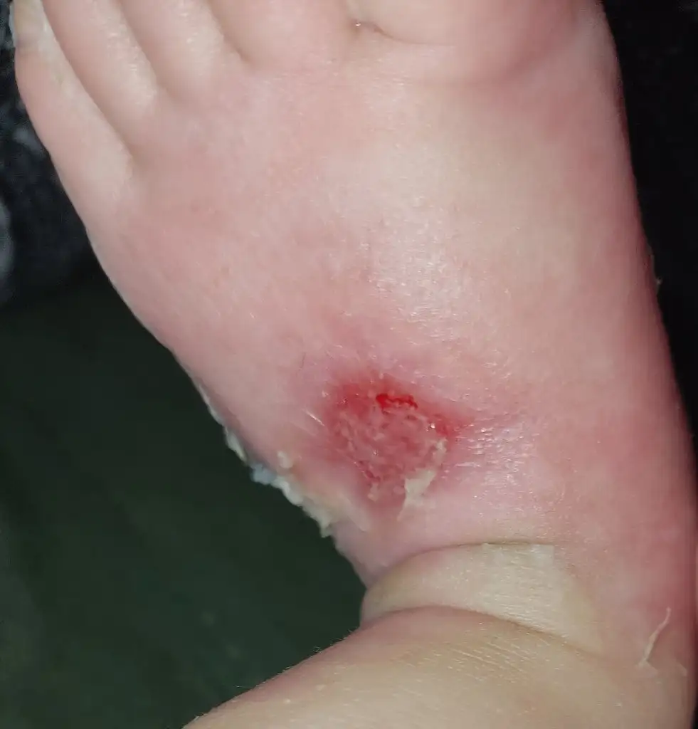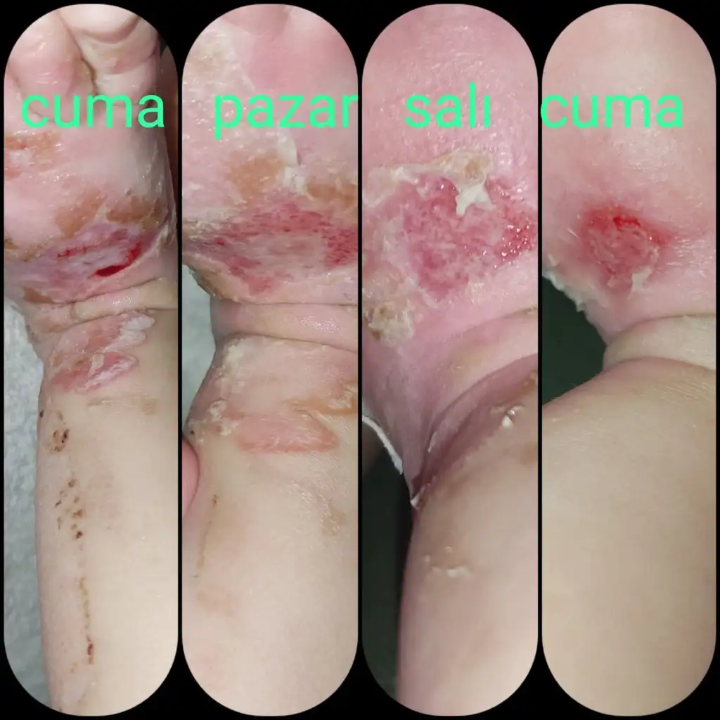 19. günden ayağının üstündeki derin yanık yarası ve bacağındaki yüzeysel yanık izleri. DİLERİM ŞİFA BULUR YAVRUM... ÂMİN..