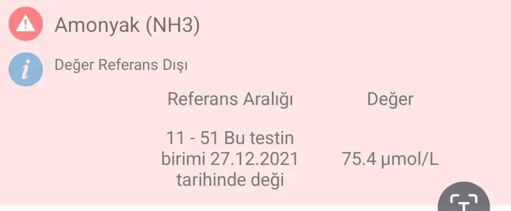 Evet Pazartesi günü kan vermiştik yüksek çıkmış tekrardan bı kontrol edilmesi gerekiyor dedi doktor Çarşamba günü tekrardan kan vericez amonyak içinAmonyak önemli bir test. Kaç çıkmış son