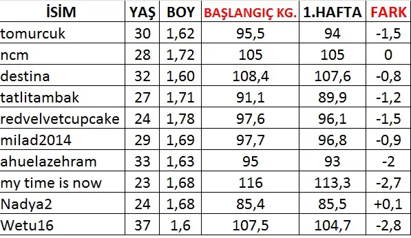 Hemen düzeltiyorumhaftanın 1.si olmak güzel inş .hepimiz çooookk kilolar verelim..
